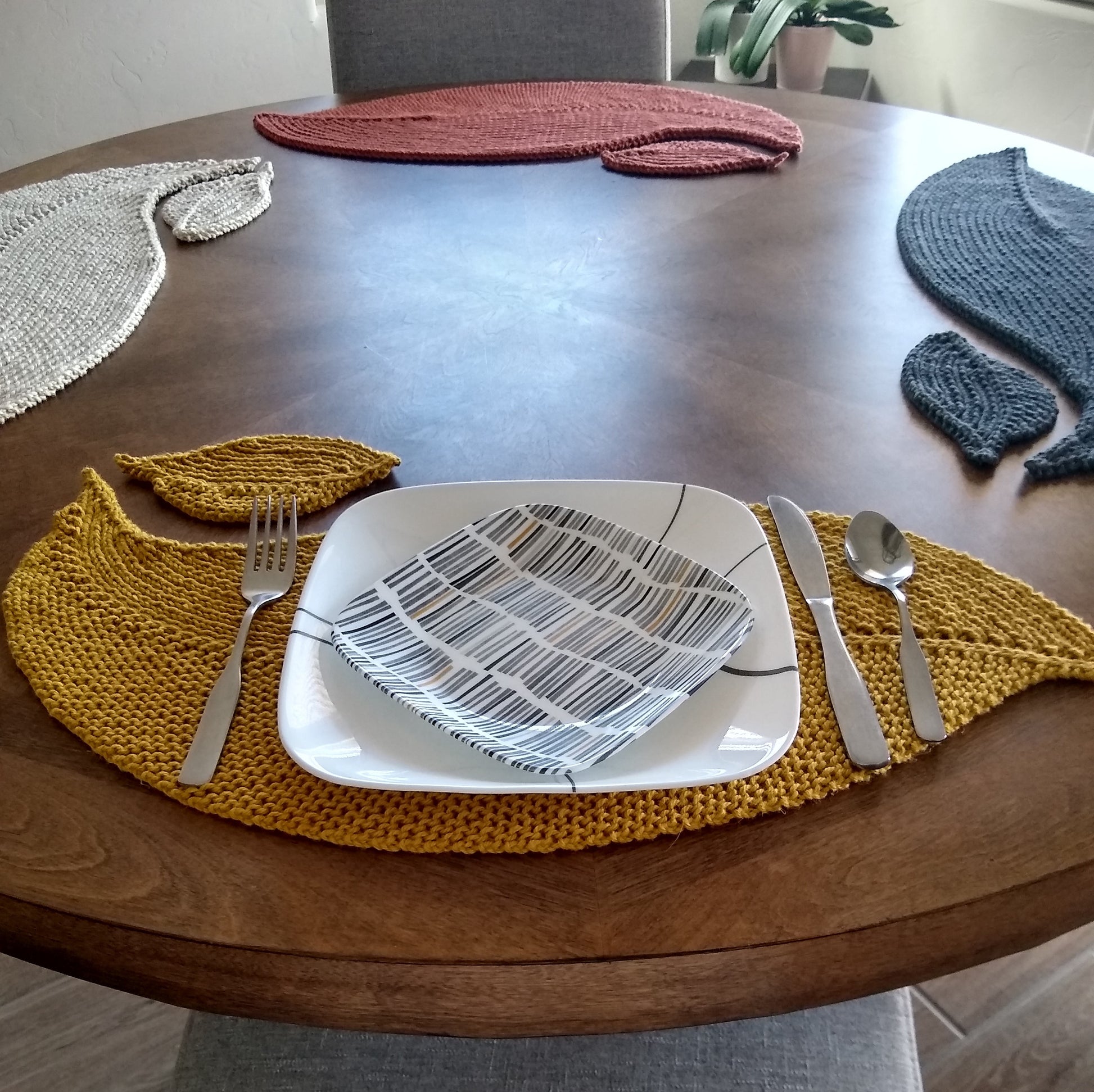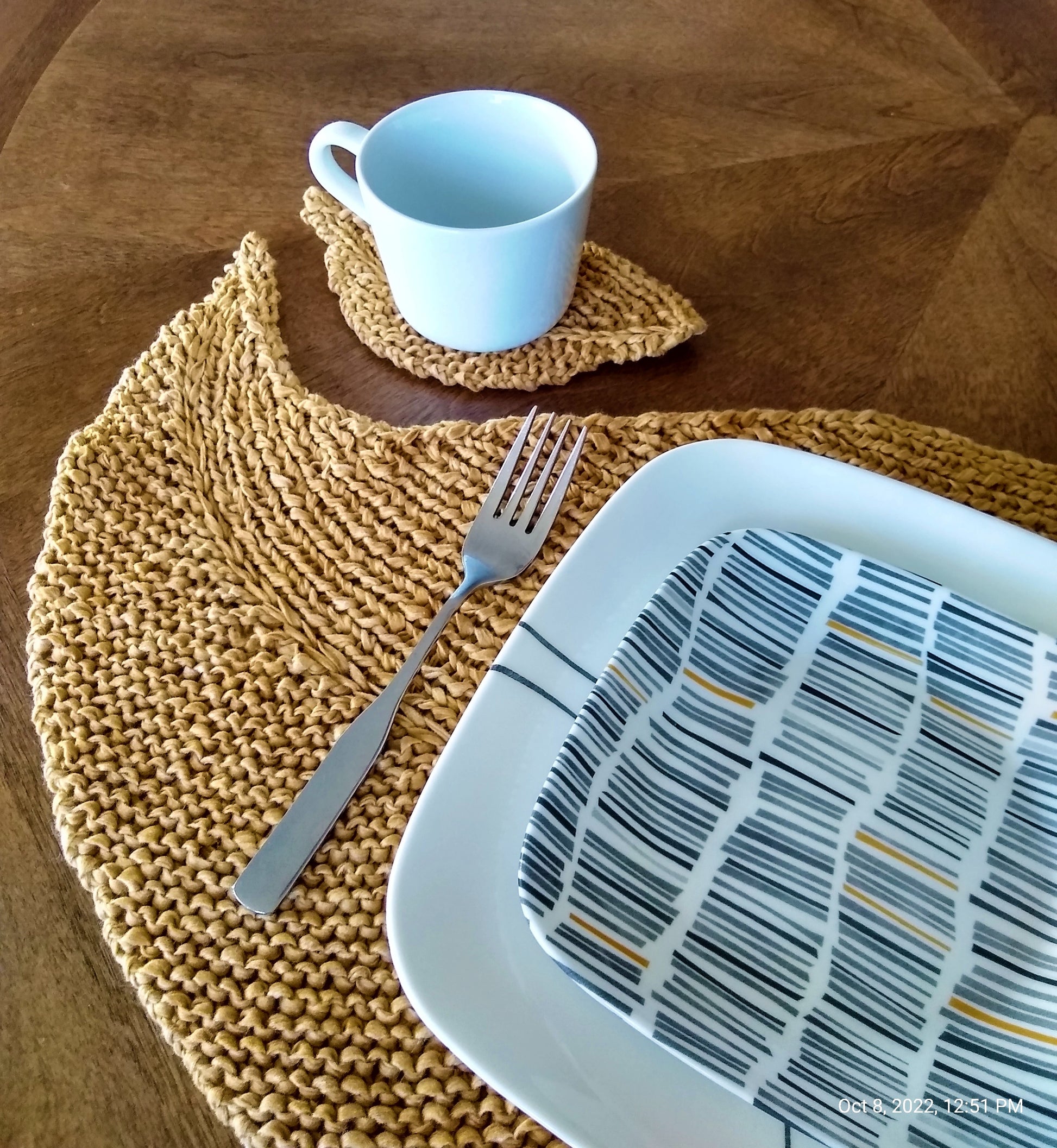 Leaf Placemat and Mug Mat Knitting Pattern by Lavender Hill Knits