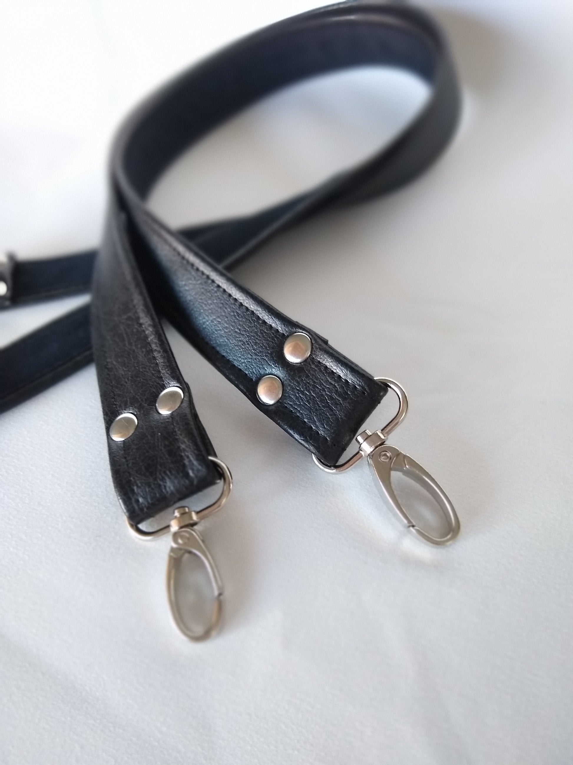 Navy blue, distressed brown and solid black faux leather, vinyl straps with silver d-ring or swivel clip on each end for DIY knitted, crocheted or sewn hipster bags, purses or tote bags. 48" strap sold individually, 24" handles sold as a pair. If you need a different length, send me an email and I'll let you know if I can make them!