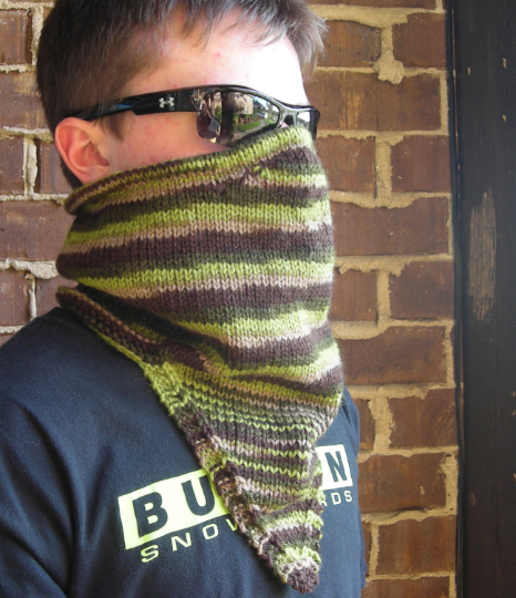 The Kerchief Warmer is the perfect neck warmer when you need functionality, but also want to look cool. The warmer is shaped along the top so it can be pulled up over your nose and not slip down, great for snowboarders and skiers! You can also snug it up around your neck or nose using the drawstring along the top. The front is shaped in a “v” so it will provide more coverage in the front without adding bulk at the back of your neck.